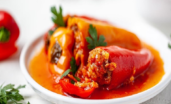 Фарширований перець із рисом, фаршем і плавленим сиром