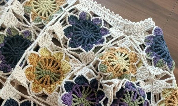 Джемпер зі вставками із квадратних мотивів гачком