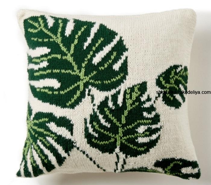 Чехол для подушки тропические листья. Вязание декоративных подушек