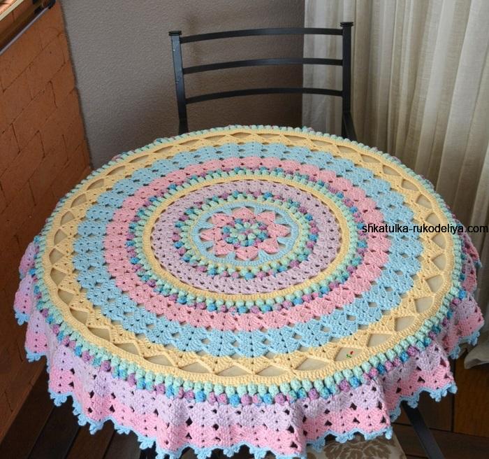 Цветная скатерть крючком. Круглая скатерть крючком со схемами