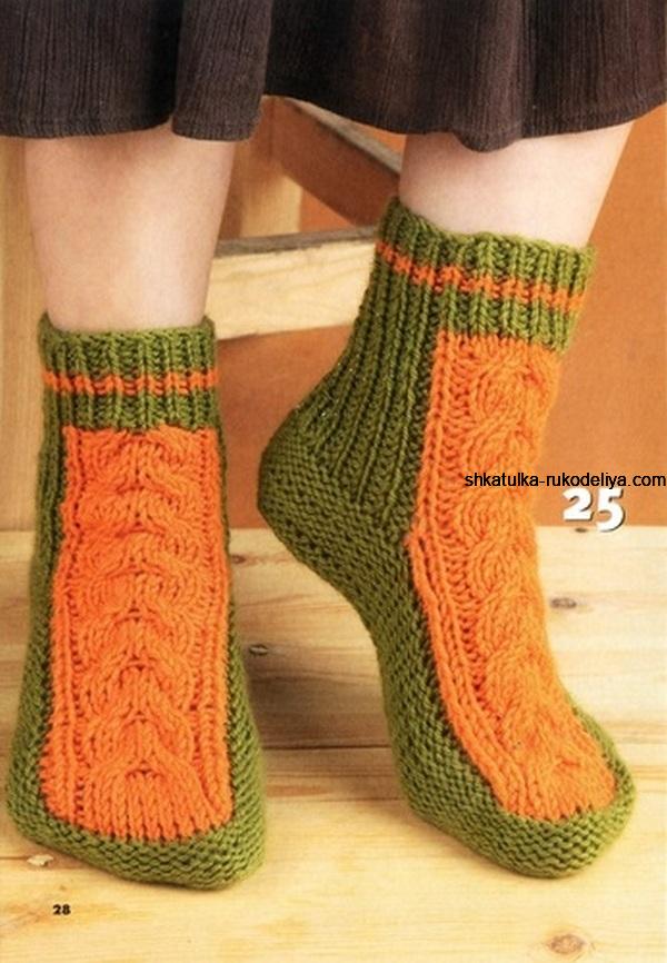 Двухцветные носки с косами спицами. Теплые носки спицами с описанием