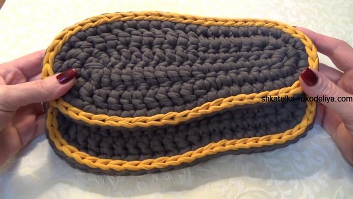 вязание крючком, двойная подошва, тапочки, мастер класс, видео, трикотажная пряжа, схема, женские, подробный урок