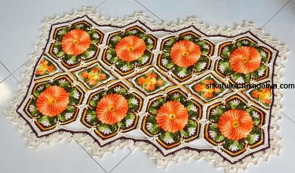 вязание крючком, коврик, прямоугольный, мотивы, обьемный, для дома, схема