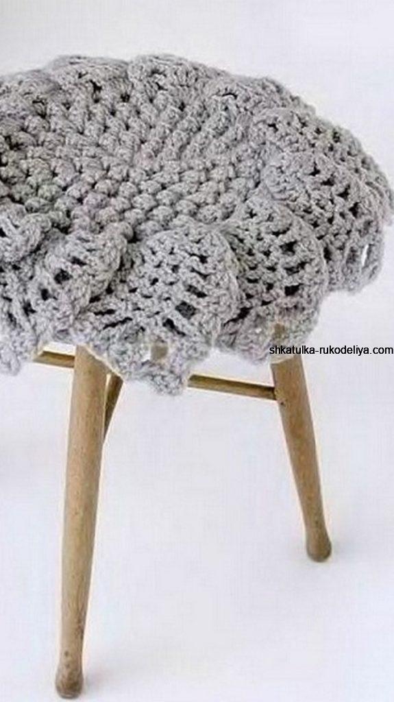 Коврик на табурет с обьемными листьями крючком. Схема вязания круглого коврика крючком