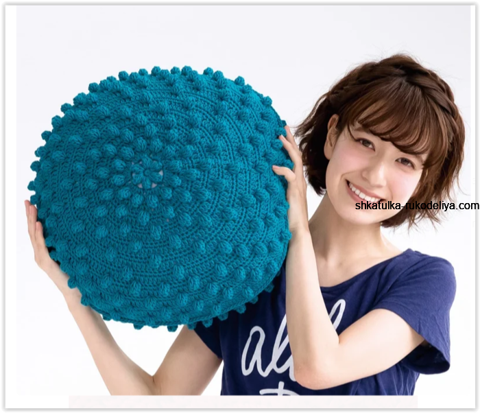 вязание крючком, подушка, декоративная, для дома, схема, своими руками, круглая