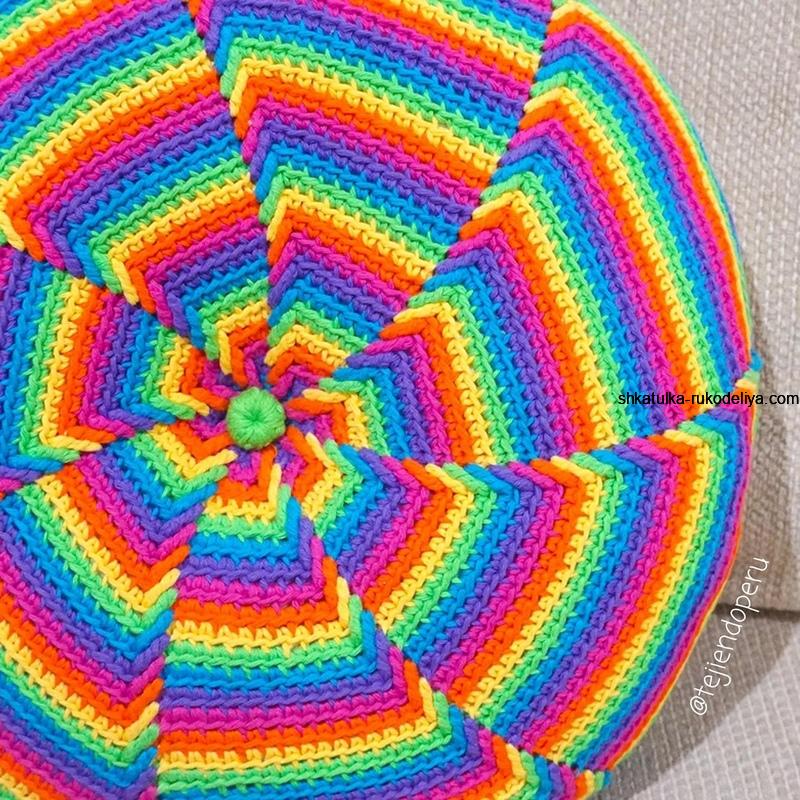 Круглая подушка в интересной технике крючком. Видео на испанском языке. Декоративные подушки крючком мастер класс