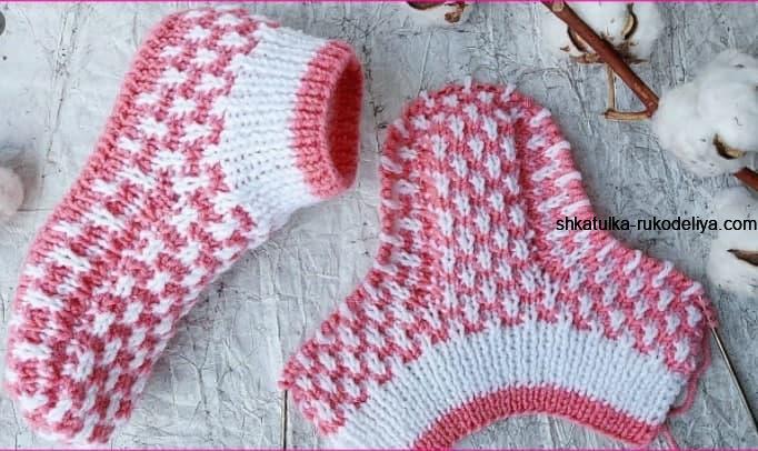 вязание спицами, следки, тапочки, мастер класс, видео, двухцветные, для начинающих вязальщиц, для женщин