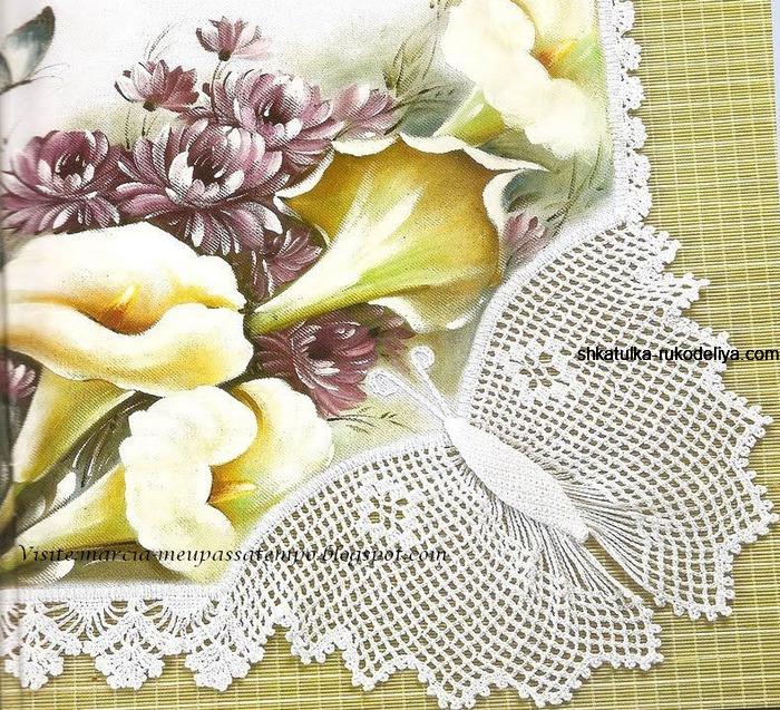 вязание крючком, кайма, обвязка, бабочки, схема, оригинальная