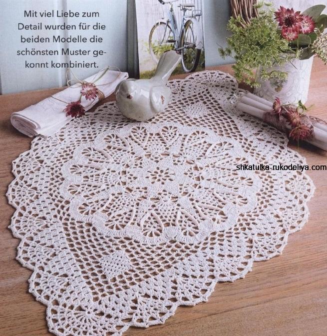 вязание крючком, салфетка, схема, овальная, белая, для дома, бесплатно, большая