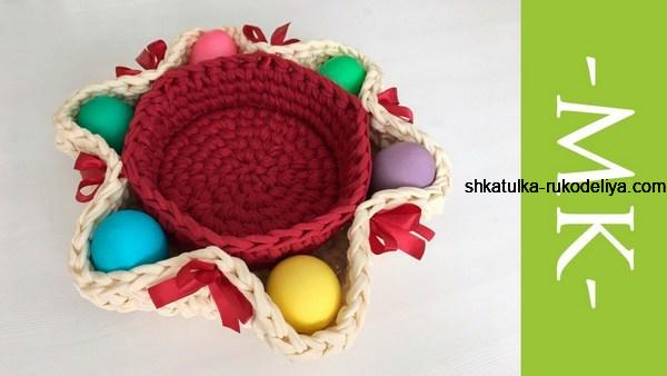 Пасхальная корзинка крючком из трикотажной пряжи. Пасхальная корзина своими руками. Послужит прекрасным украшением для стола или отличный подарок