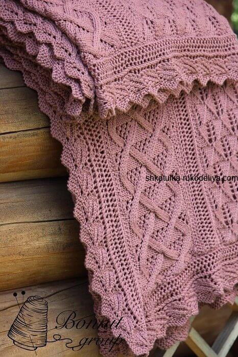 Прекрасний лавандовий плед спицями. Плед, пов'язаний своїми руками, принесе у ваш будинок теплоту і затишок. В'язати такий плед справа клопітна і важка. Запасіться терпінням, дотримуйтесь схеми.