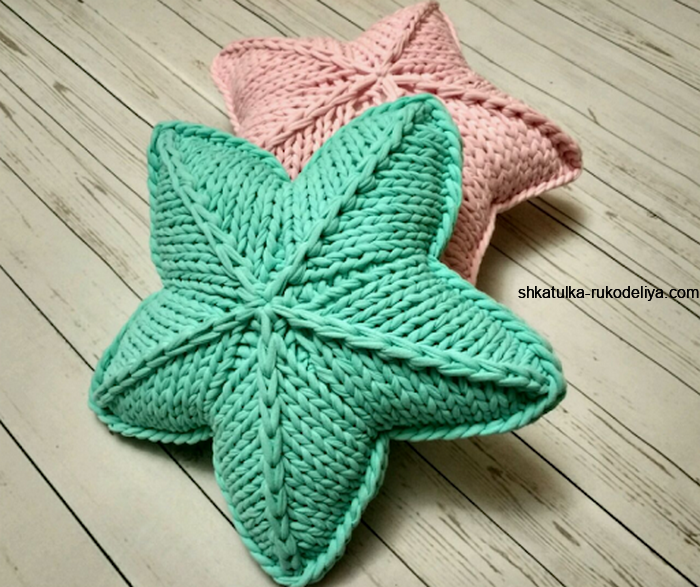 Звезда-подушка из трикотажной пряжи. Диванная подушка спицами мастер класс