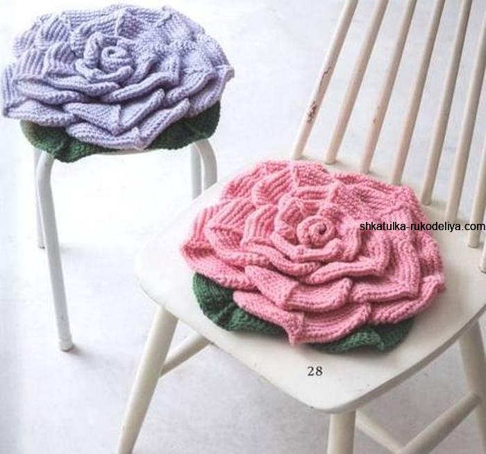 вязание крючком, сидушка, чехол, на стул, своими руками, схема, обьемная роза, быстро, легко