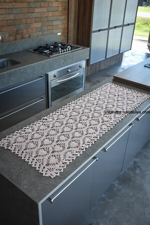 Салфетка крючком узором “ананас”. Прямоугольная салфетка крючком из хлопчатобумажной пряжи белого цвета