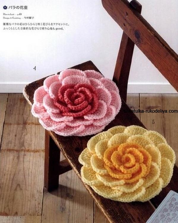 вязание крючком, сидушка, цветок, круглая, схема, на табуретку, для дома, своими руками