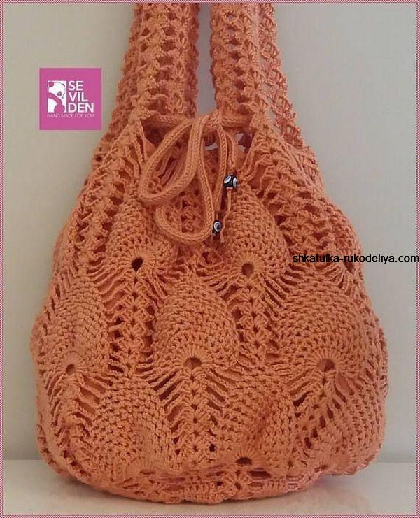 вязание крючком, авоська, модная, 2020, схема, узор ананас