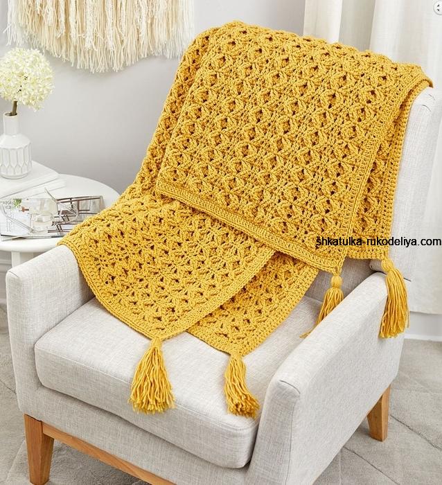 Уютный желтый плед крючком. Схема вязания детских пледов крючком