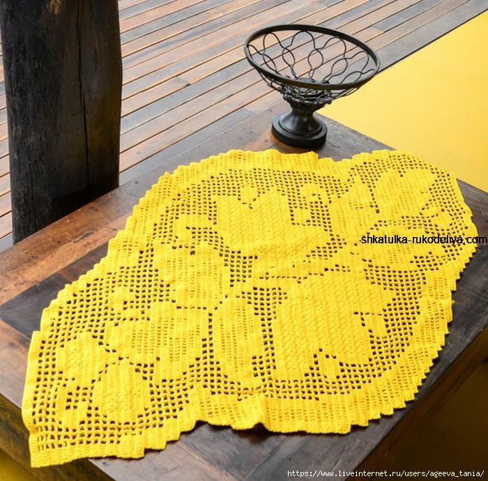 вязание крючком, салфетка, схема, филейная техника, желтая, для дома,овальная