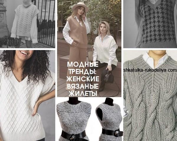 Вязка для такой корпоративной модели используется гладкая, без излишне – выпуклых элементов. Для прогулки на природе или на пикнике пригодится женский жилет, вязанный из толстой, пушистой пряжи – типа альпака или мохера. Его можно связать крупными, объемными косами, или геометрическим рисунком с элементами ажура.