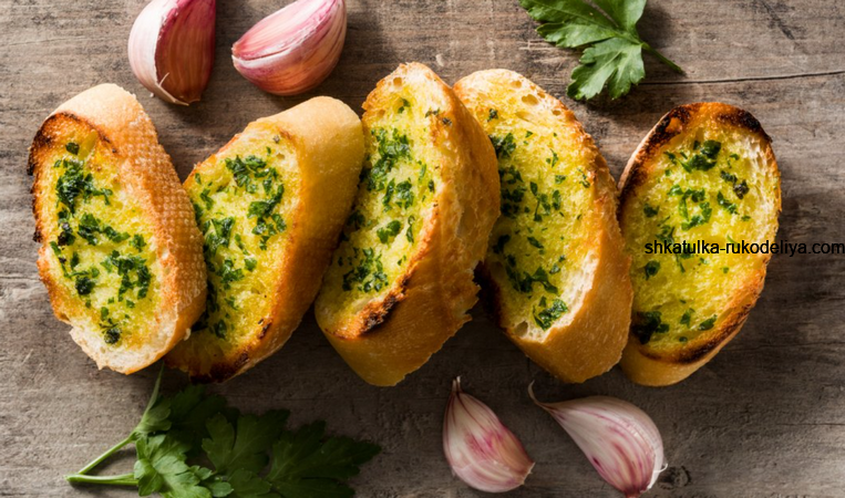 Готовий часниковий багет приправити сіллю і перцем за смаком.