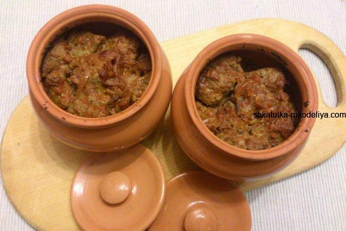 Закриваемо горщики кришками і ставимо випікатись в розігріту до 180 °С духовку на 50 хвилин. Потім перевірити на готовність – якщо картопля легко проколюється ножем, значить страва готова.
