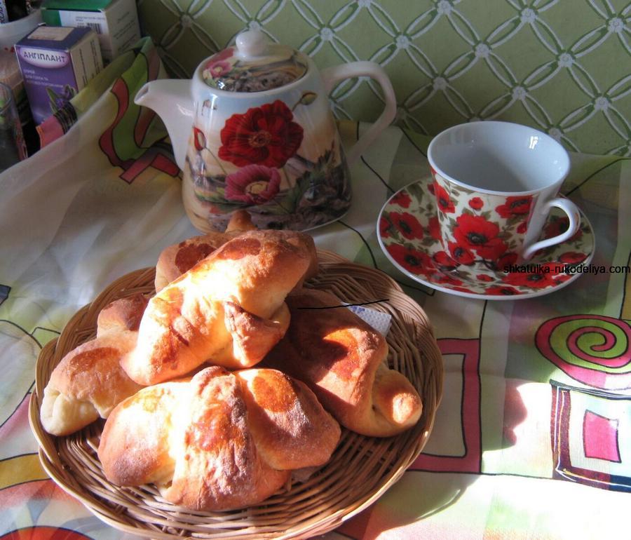 Тесто настолько пышное, что это скорей даже булочки с начинкой, и при этом огромный плюс, что нет необходимости возиться с опарой и выдержкой самого теста – «смешали и сразу выпекаем» – отличное предложение даже для начинающей или очень занятой хозяйки.
