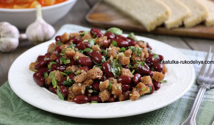 Квасолю зціджуємо від аквафаби (рідини в консерві) і закладаємо в салатник.