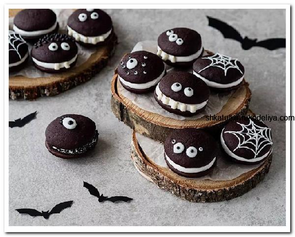 Страшшшно веселый и страшшшно вкусный десерт, идеально подходящий для Хэллоуина! Сложив половинки печенья, достаньте сахарные маркеры и … доверьтесь собственному воображению, украшая их вместе с детьми! И они гарантировано вызовут улыбку на вашем столе!