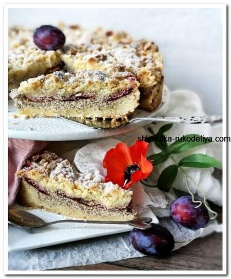 Вкусная домашняя выпечка. Восхитительное сочетание мака и творога на песочном тесте с добавлением сливы.