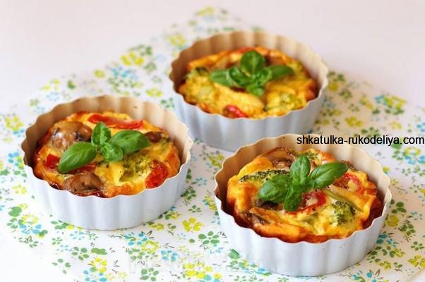 По сути яичные мини-тарты с овощами это одна из вариаций омлета. Приготовленные с фантазией и красочно оформленные такие «а-ля тарты» – чудесное предложение, как оригинально обыграть повседневные завтраки. Тем более что варьировать с компонентами и готовить такой омлет можно в любое время года. Особенно радостно такая идея воспринимается маленькими гурманами. Если же вы любитель сладких завтраков то советую вам заглянуть на сайт cookinghub за рецептом вкусных эклеров