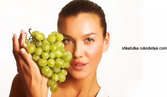Разомните в миске несколько спелых виноградин вместе с кожурой, после чего соедините кашицу с несколькими каплями лимонного сока (если у вас нет аллергии) и 2-3-мя каплями оливкового масла. Полученной кашкой смажьте лицо, традиционно минуя области вокруг глаз. Через 15 минут маску еще слегка помассируйте (она будет работать как пилинг) и смойте теплой кипяченой водой.