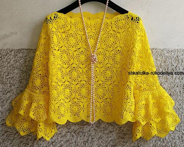 Ажурная кофточка мотивами. Интересные кофточки крючком
