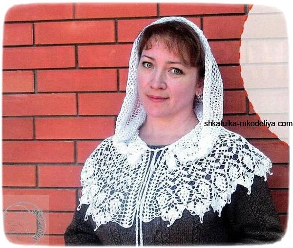 вязание крючком, накидка, капор, женский, для храма, схема, описание