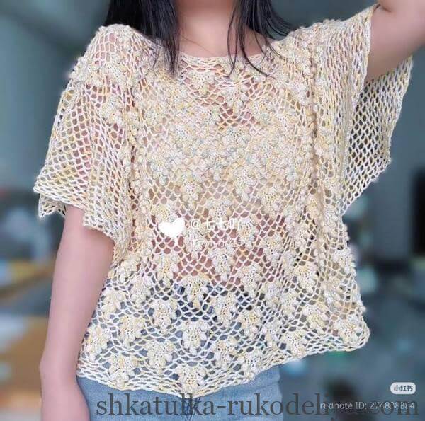 Блуза візерунком “Виноград”13.04.202613.04.2026В'язання гачкомКофточки, топи Блуза візерунком Виноград гачком Просмотры: 151Share this:Click to share on Facebook (Opens in new window)Click to share on LinkedIn (Opens in new window)Click to share on Twitter (Opens in new window)Click to share on Pinterest (Opens in new window)Click to share on Telegram (Opens in new window)блуза, в'язання гачком, для жiнок, схема Previous Post