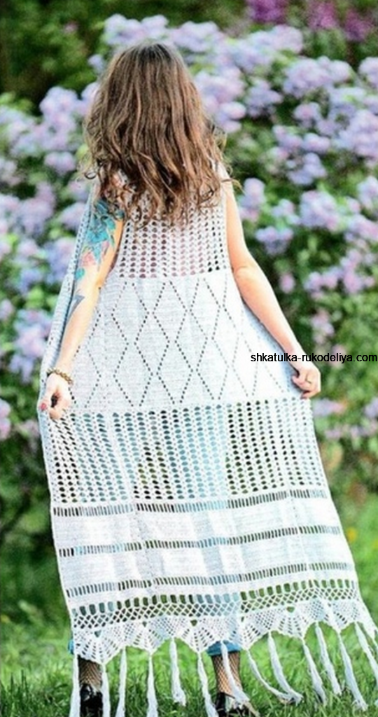 Длинный жилет с миксом узоров крючком. Связать жилет женский крючком схемы