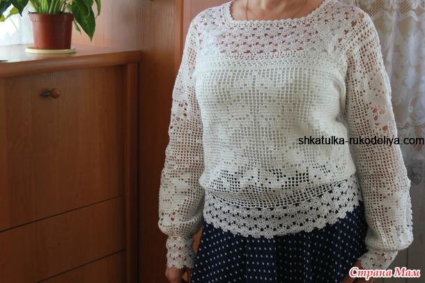 Филейная блузка классика жанра крючком. Летняя блуза филейным узором