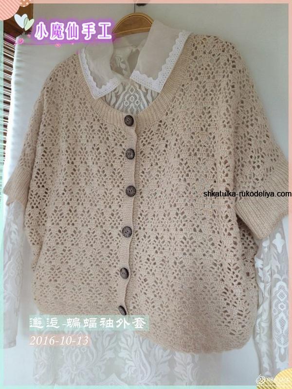 вязание крючком, кофточка, схема, рукав летучая мышь, белая, красивый узор, летняя, женская