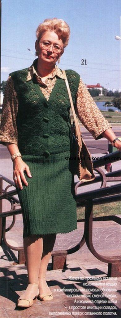 Костюм крючком: жилет и юбка. Женские костюмы вязаные крючком