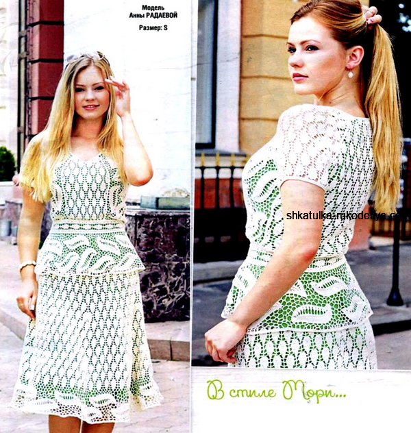 Летний костюм с элементами ирландского кружева крючком. Костюмы крючком схемы вязания