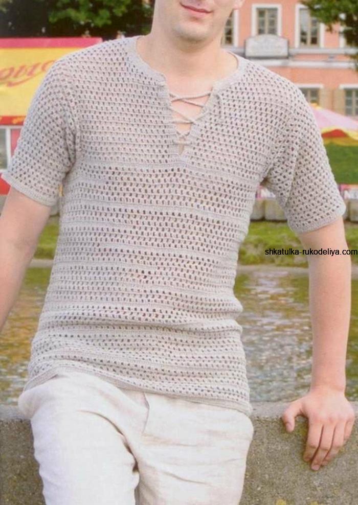 вязание крючком, пуловер, описание, мужской, для начинающих, на завязках, лето