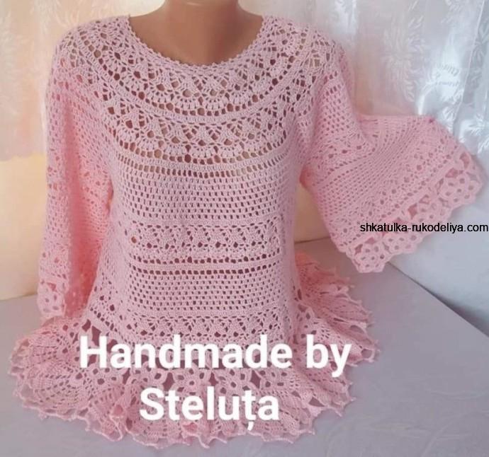 Розовая летняя кофточка крючком. Блуза крючком для начинающих схемы