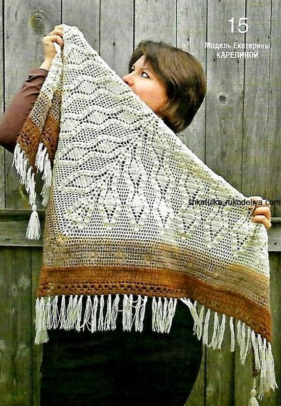 вязание крючком, шаль, простая, красивая, схема, описание, женская
