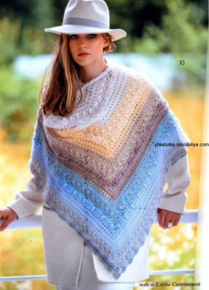 Шаль из пряжи секционного крашения крючком. Шали крючком новинки со схемами. Новинка 2021
