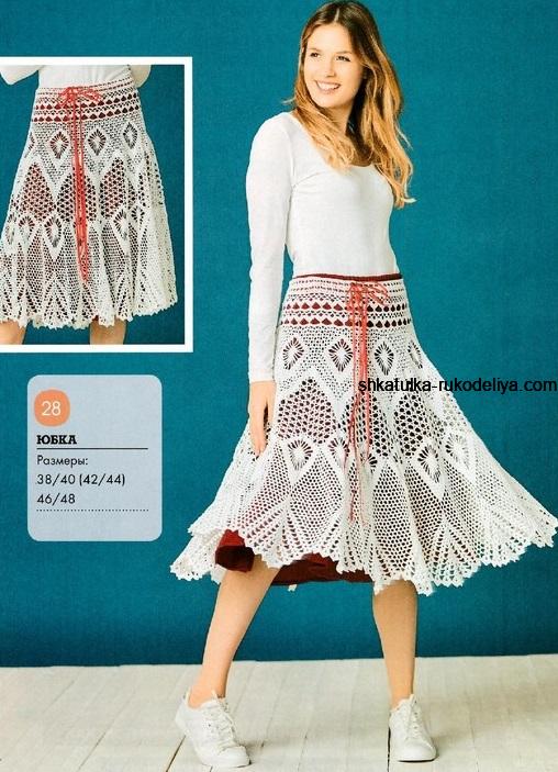 Белая узорчатая юбка крючком. Летняя модель юбки с описанием 2020-2021