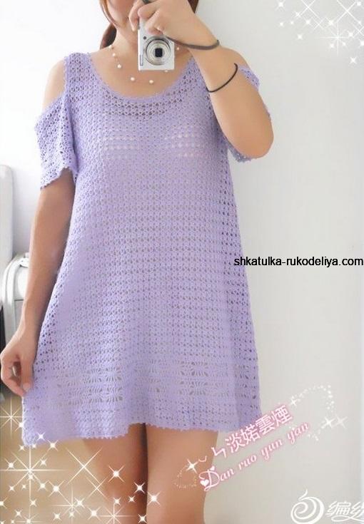 Фиолетовая туника крючком по японским схемам. Свободная летняя туника простым узором
