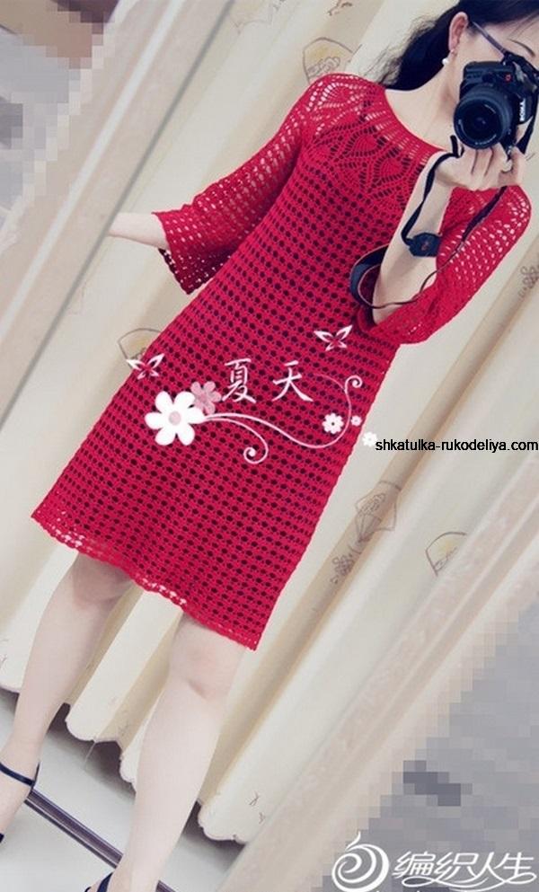 Летнее платье с ананасовой кокеткой крючком. Летнее женское платье крючком с коротким рукавом