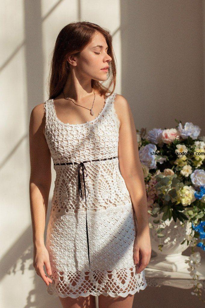 вязание крючком, платье-футляр, схема, описание, женское, ананас, лето, романтическое