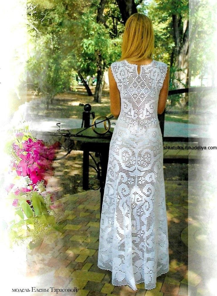 вязание крючком, платье, схема, описание, лето, филейная техника, длинное, ручная работа, нарядное