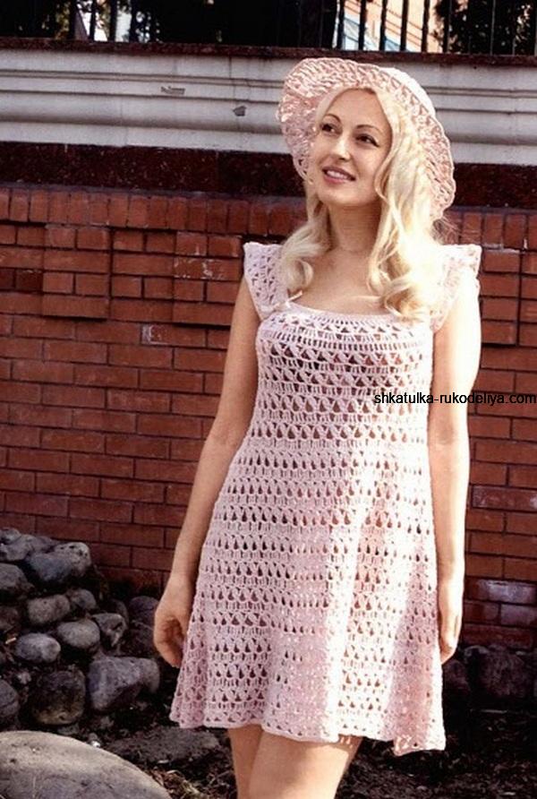 Розовый сарафан с кокеткой крючком. Летний короткий сарафан крючком с описанием