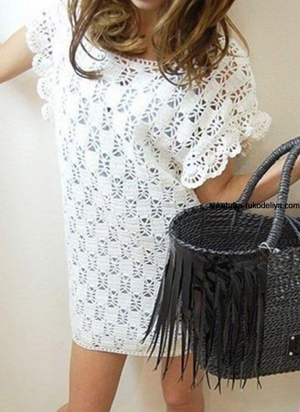 Туника с узором паучки крючком. Интересное платье свободного покроя крючком